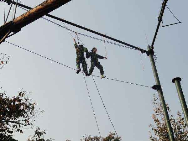 華盛江泉集團始終將人才建設視為頭等大事,注重提升大學生的綜合能力和素質,重視大學生行為品格、身心素質的全面發展。但在許多大學生身上,都不同程度地存在著諸如以自我為中心、自私、獨立性差、責任心差、缺少勇氣、不愿溝通等缺陷,僅依靠傳統教育恐怕效果并不明顯,需要采用新的教育手段-大學生拓展訓練。體驗式培訓即拓展訓練被廣泛認為是一種行之有效的方法。 在此次訓練課程中的一些特定的環境和氣氛中,大學生要不斷克服自己的心理恐懼、提高情緒,調節自我控制能力、保持平和心態、挑戰自己、戰勝自己,從而塑造冷靜、果斷、堅忍不拔的良好意志品質。比如:斷橋這個項目就是旨在培訓大學生心理抗干擾的能力,如果大學生有一顆平常心,把高空項目的干擾因素排除在腦海之外,就會輕而易舉地完成這個項目。