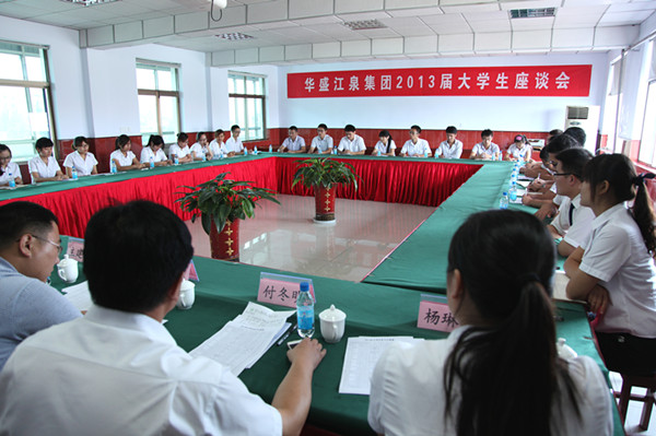 會上,首先由華盛江泉集團人力資源部主任李新勝對大學(xué)生的主要工作情況進行了簡要介紹。隨后參會大學(xué)生圍繞自身成長經(jīng)歷,結(jié)合當前基層工作情況展開熱烈討論,積極建言獻策,分別從大學(xué)生檔案的管理、企業(yè)文化等方面進行了交流探討,并提出了發(fā)展建議。各位領(lǐng)導(dǎo)針對員工在工作中的疑問和建議逐一進行了解答。座談氣氛熱情洋溢、和諧融洽,充分展現(xiàn)了公司高層領(lǐng)導(dǎo)傾聽基層心聲、注重人文關(guān)懷的管理理念和員工求真務(wù)實、敬業(yè)愛崗的精神風貌。